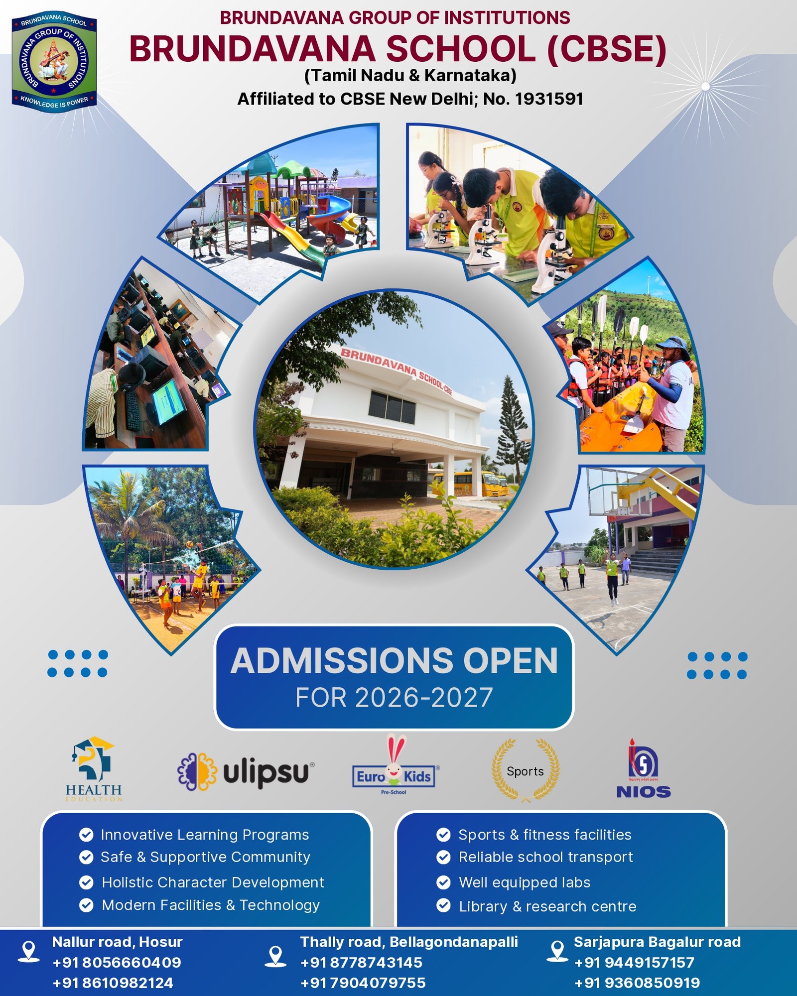 Our vision at Brundavana School is to be a leader in innovative and holistic education, recognized for nurturing well-rounded individuals who are intellectually curious, socially responsible, and emotionally resilient. We envision a school where every student achieves their full potential in a supportive and inspiring environment. Through continuous improvement and collaboration with parents and the community, we aim to uphold our commitment to excellence and ensure the holistic development of every child entrusted to our care.
